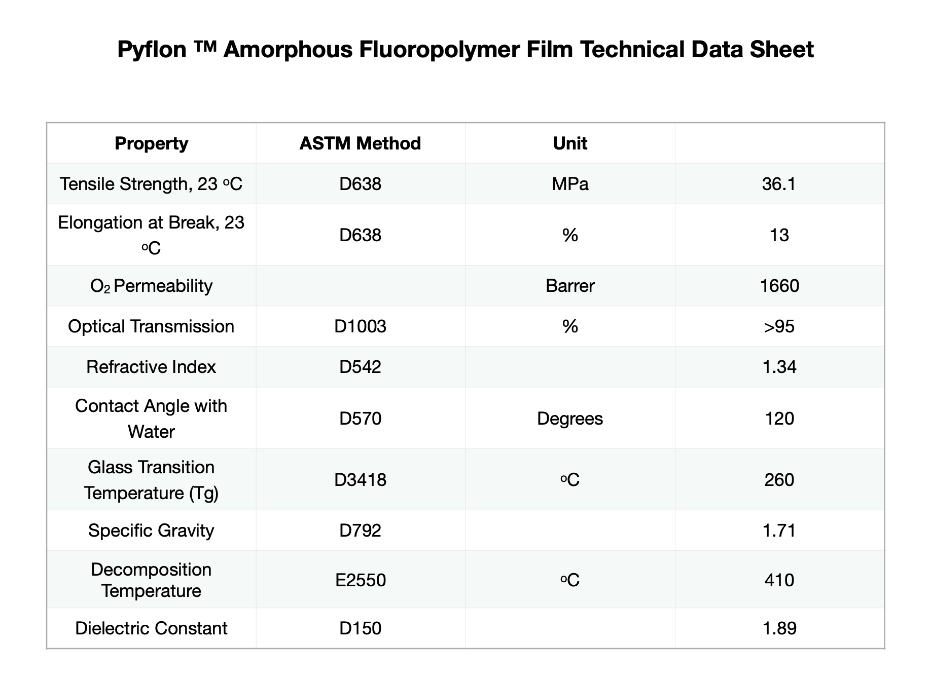 transparency, chemical inertness, and non-stick surface energy, making